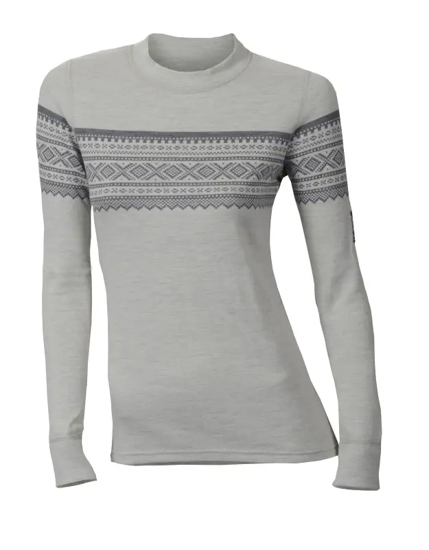 DesignWool Marius crewneck är ett en tröja med lång ärm i mjuk och bekväm merinoull från Aclima. De har en mycket stilren design med Aclimas Marius mönster. Damstorlekar.